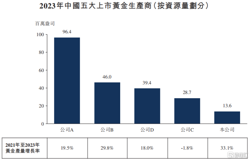 自2021年至2023年,公司黄金产量实现了33.1%的复合年增长率,超过国内主要的上市黄金生产商的平均增长率16.4%。