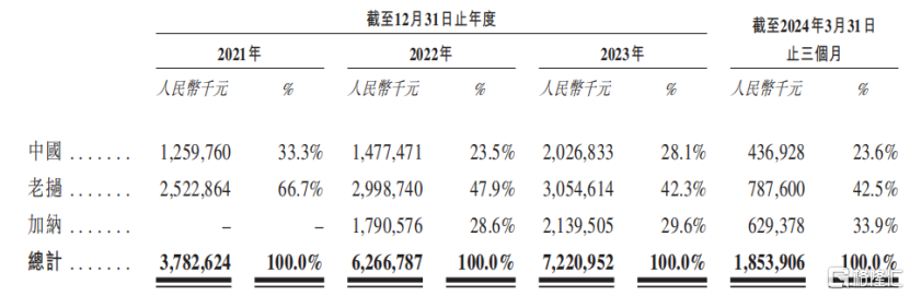 按子公司地理区域划分的收益明细,来源招股书