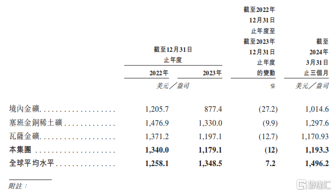 2023年,公司的黄金单位全维持成本降幅为12.0%,打破了全球成本上升的趋势,同期,国际黄金生产商的平均单位全维持成本升幅为7.2%。公司在招股书中称,主要是因为严格控制资本开支,大幅降低成本。