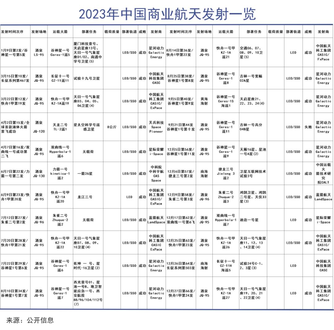 9月24日,捷龙三号运载火箭,成功发射8颗卫星;9月20日快舟一号甲运载火箭成功发射升空4颗卫星;9月6日太原卫星发射中心成功发射一箭10星;8月6日,长征六号改运载火箭成功将千帆极轨01组18颗卫星发射升空。