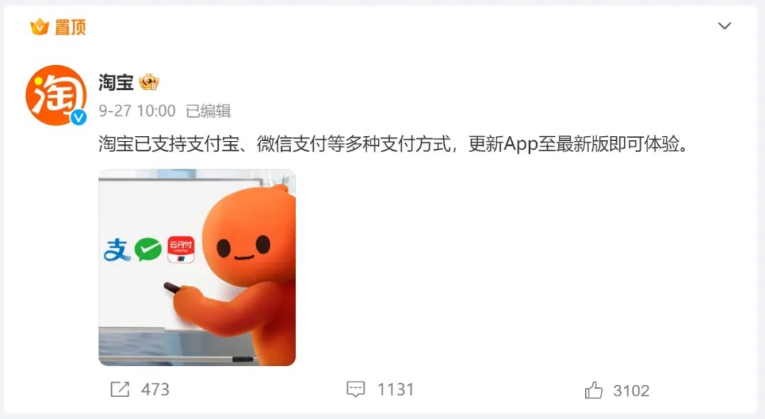 在即将到来的双11电商大促之际,两家大厂异常迅速,目前淘宝大部分主流商家,已经签约全量上线微信支付。