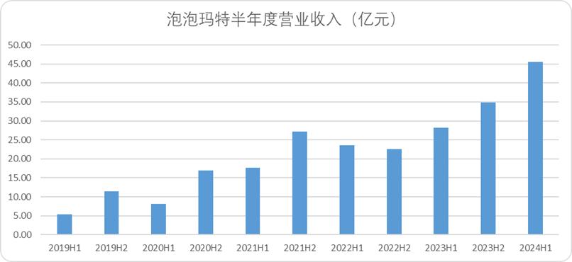 图:泡泡玛特半年度业绩增速,来源:Choice金融客户端