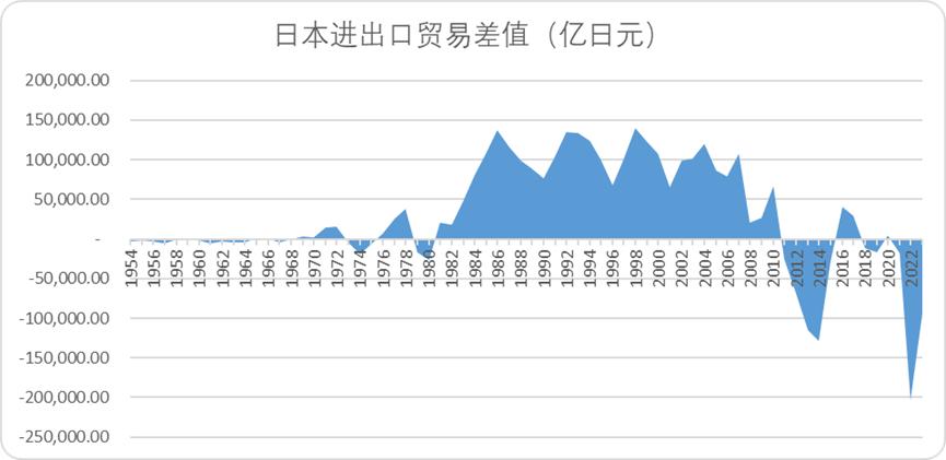 图:1954至今日本进出口贸易差值,来源:Choice金融客户端,锦缎整理