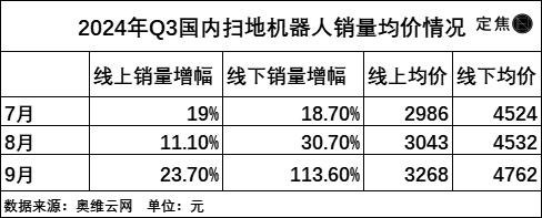 再具体到Q3,奥维云网数据显示,扫地机器人7月、8月、9月的单月销量不仅出现了同比增长,购买均价也连续三个月上涨,9月的线下均价达4762元。