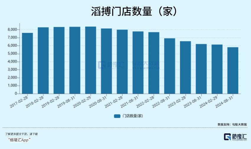 数据显示,2020年,滔搏的门店数量达到历史巅峰8395家,而到了2024,这一数字已经缩水至5813家。