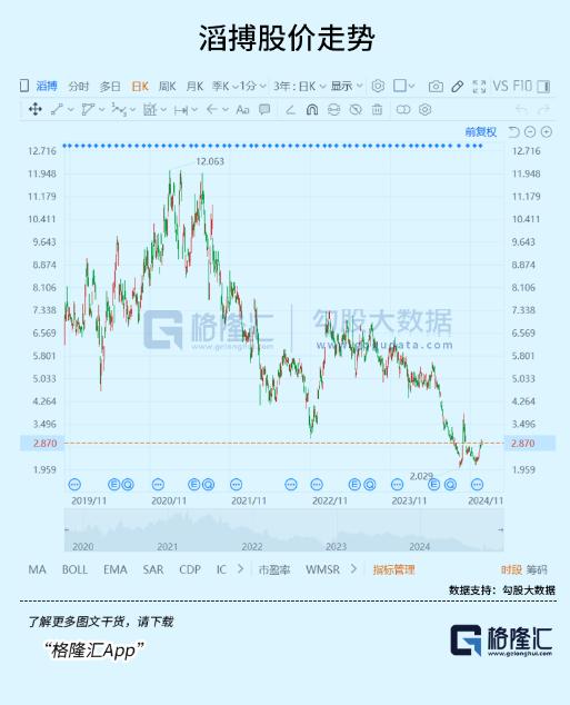滔搏的股价也从2021年一度涨至12港元/股的价格一路下跌,至今已不超过3港元/股。