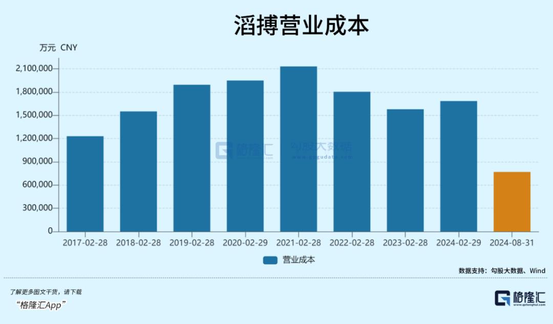 2018年开始,滔搏门店呈爆发式增长,营业成本也逐年增长,随着2021年后,滔搏逐渐关店,营业成本也随之下降。