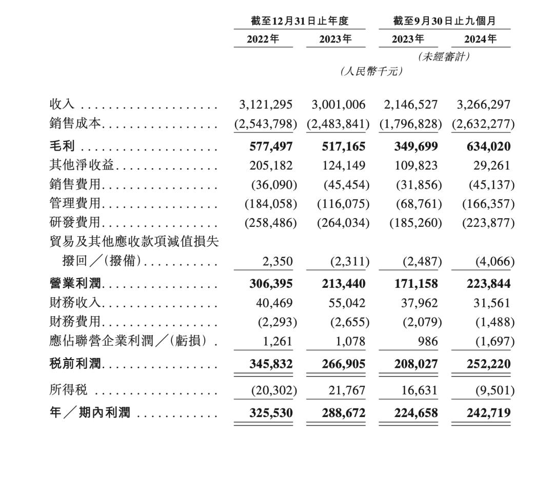 招股书显示,2019-2023年及2024年前三季度(下称:报告期),歌尔微的营业收入分别约为25.66亿、31.60亿、33.48亿、31.21亿、30.01亿、32.66亿元,归母净利润/期内利润分别约为3.09亿、3.46亿、3.29亿、3.26亿、2.89亿、2.43亿元。