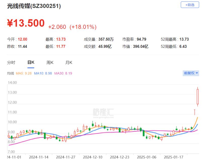 在爆款电影《哪吒之魔童闹海》(又称“哪吒2”)的助力下,光线传媒继昨天20CM涨停后,今天又大涨18%;