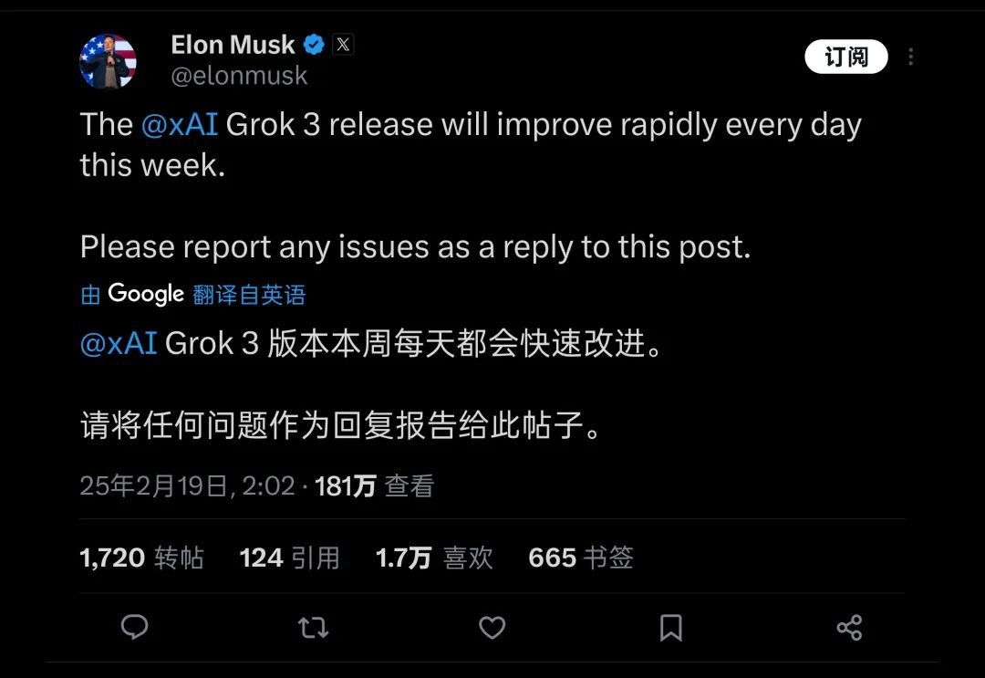 目前,众多在几周前获得 Grok3 测试资格、以及昨天刚刚用上几个小时的模型能力测试者,对于 Grok3 当前的表现,都指向了一个相同的结论: