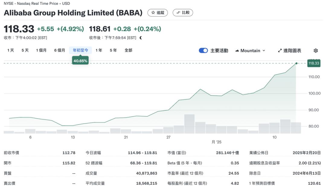 2025年,是AI转型的关键一年,也是AI Agent商业化落地之年。以手机为核心的多方合作在更大范围内展开,数据在全球范围跨境流动,苹果在这个浪潮中首当其冲。在World Governments Summit 2025峰会上,阿里巴巴联合创始人、董事局主席蔡崇信正式确认了阿里与苹果的合作关系。消息一出,阿里巴巴美股开盘后持续走高,涨幅为5.55%,每股价格为118.33美元。