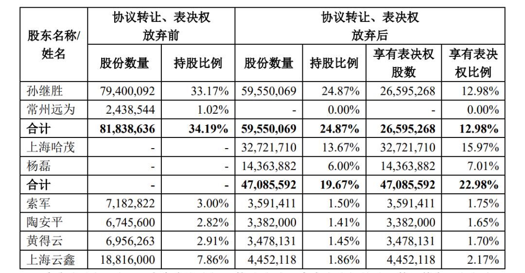 股权转让完成后,杨磊将成为永安行实际控制人,上海哈茂为控股股东,二者合计持有永安行19.67%股份。同时,孙继胜与上海哈茂、杨磊签署《表决权放弃协议》,其中约定孙继胜放弃其持有的13.77的表决权。