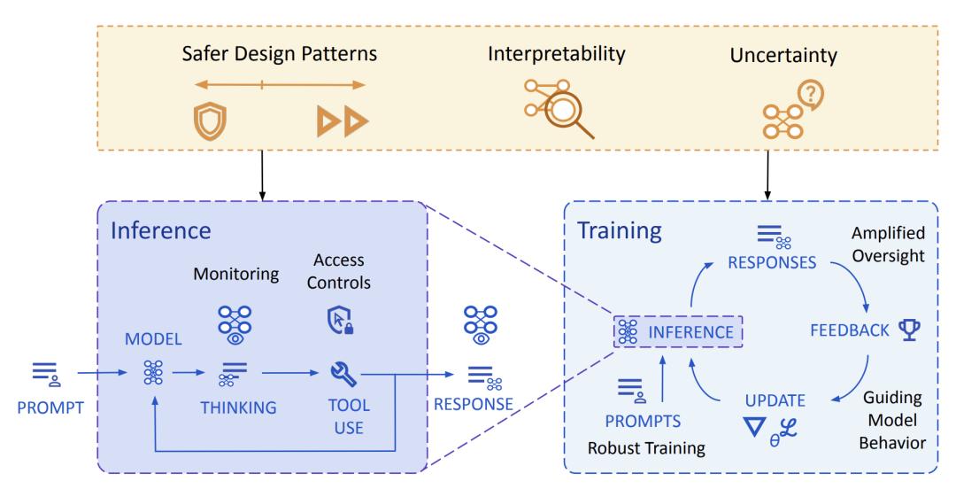 总的来看,DeepMind 并没有提出颠覆性的方式,基本沿用传统深度学习中训练-微调-部署-监控的逻辑,主张的不是「永远不出错」,而是构建结构性的缓冲层,把单点失败变成多级阻断。