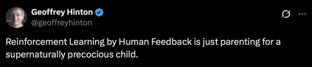 但 AI 教父、诺贝尔奖得主 Geoffrey Hinton 明确对 RLHF 持批评态度,他最早曾说,「通过人类反馈进行强化学习,就像是在养育一个早熟得超自然的孩子。」