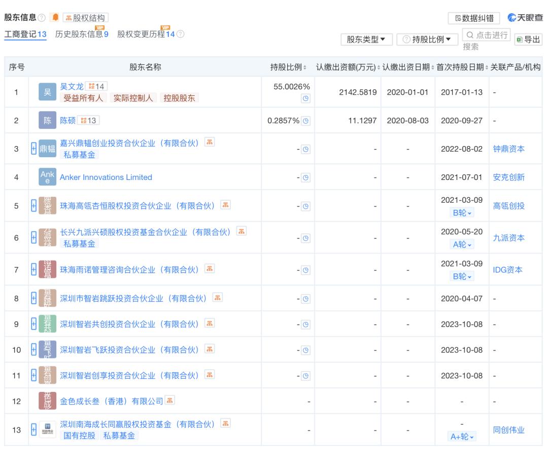 即便不考虑创业方向,吴文龙的过往履历,就足以吸引资本下注,再加上安克创新的股权托底,智岩科技一开始并未在一级市场拿钱。