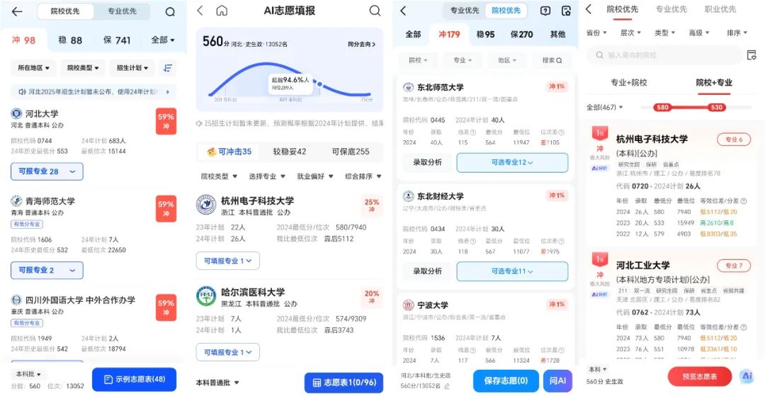 在人群上,杨凡认为,AI报志愿工具更适合分数在两端而非中间的学生,比如超本科线30分以内,或者总分在650分以上,并且目标院校、专业比较明确的考生。