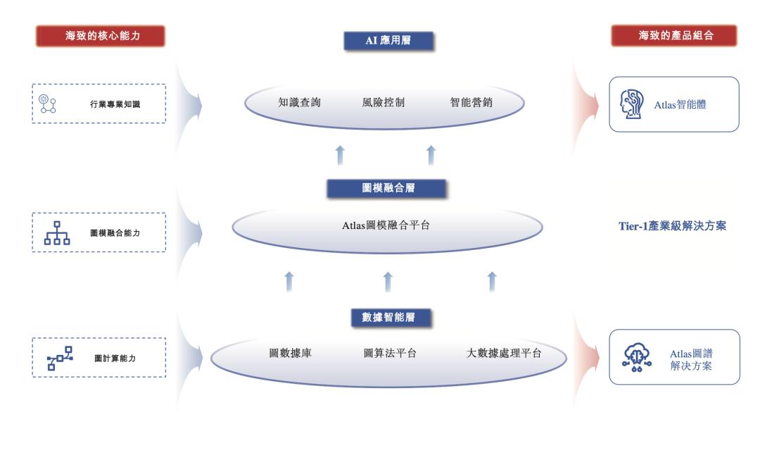 具体而言,海致科技主要向客户提供两项突破性的人工智能解决方案:Atlas图谱解决方案,基于公司强大的图计算与数据分析能力构建,包含DMC数据智能平台、Atlas知识图谱平台及AtlasGraph图数据库;Atlas智能体,基于公司图模融合技术开发的智能体解决方案。这些解决方案协同运作,将各种企业数据转换为结构化知识,增强基于推理的分析并实现智能自动化。