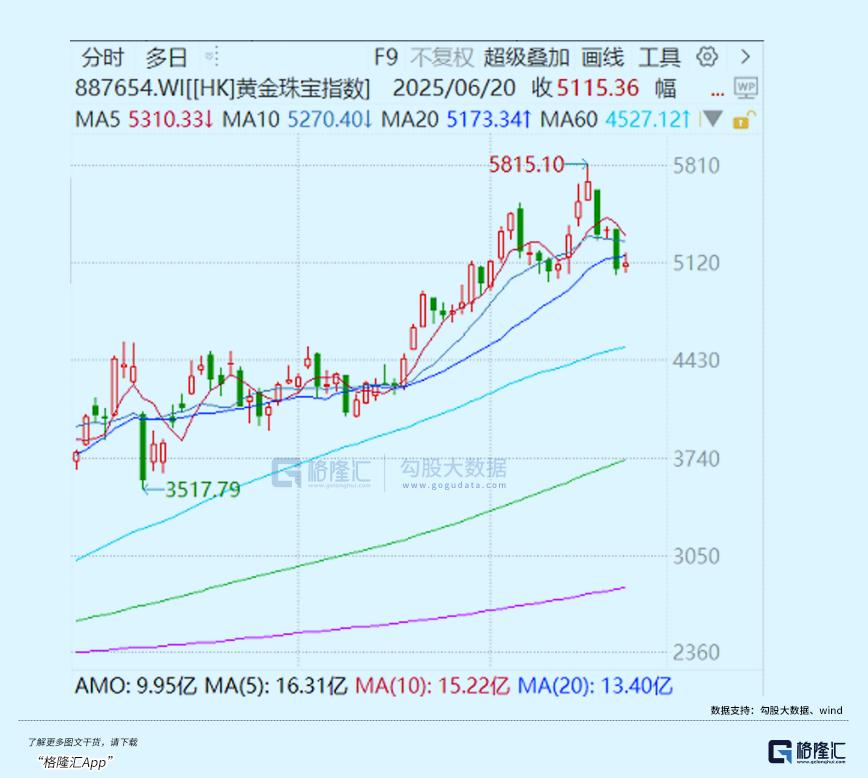 港股黄金珠宝指数也上涨超1500点,其中,周大福上涨近30%,六福珠宝、周生生均上涨超20%。