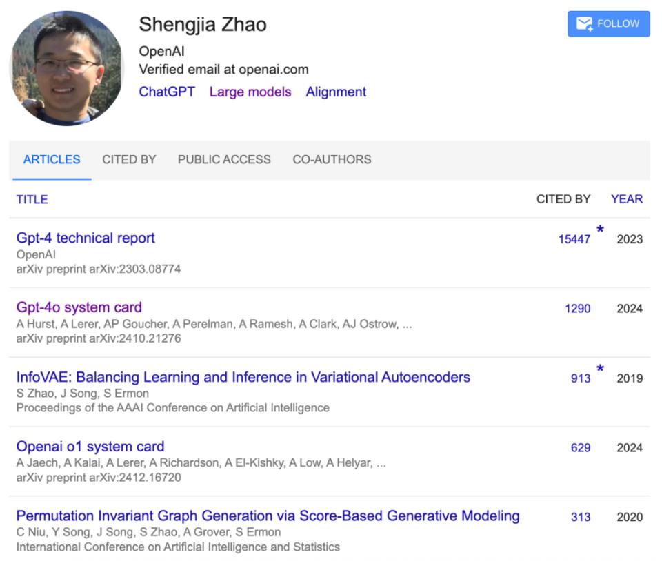 赵晟佳(Shengjia Zhao)则领导OpenAI的合成数据团队,参与从ChatGPT到GPT-4o几乎所有重要项目。