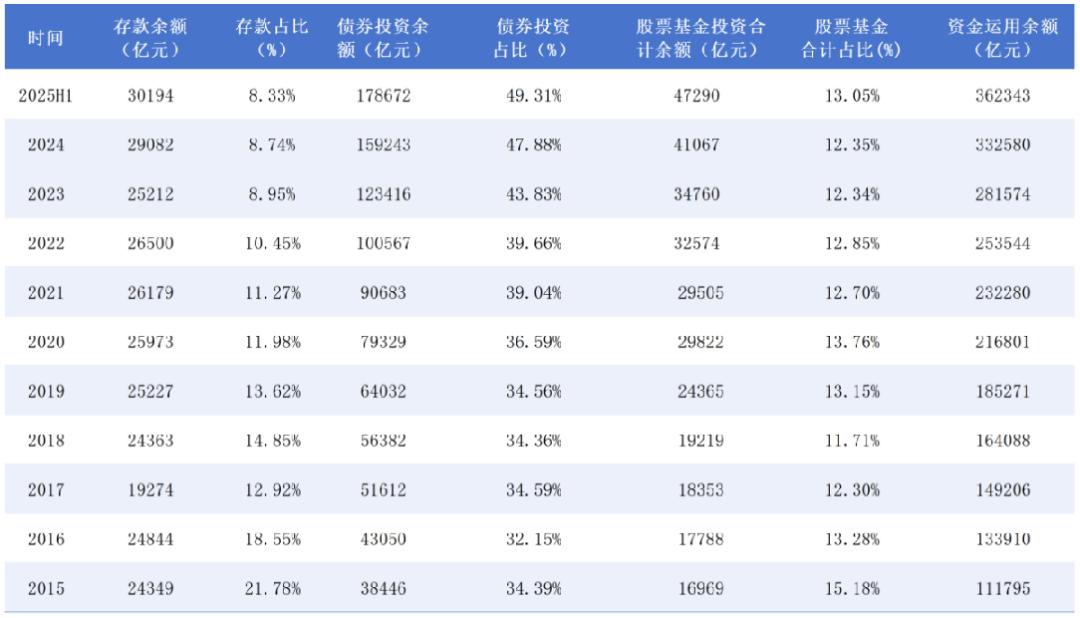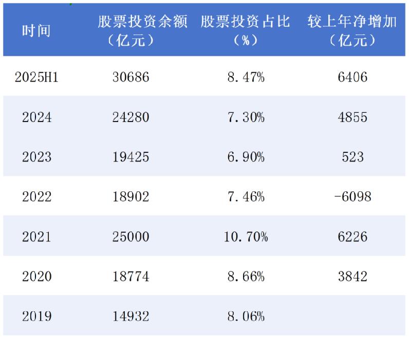 2025年8月15日,金融监管总局披露的信息显示,截至今年上半年末,保险资金运用余额达36.23万亿元,同比增长17.39%。其中,人身险公司的股票投资规模达2.87万亿元,较年初增加6052亿元;财险公司的股票投资规模达1955亿元,较年初增加354亿元。