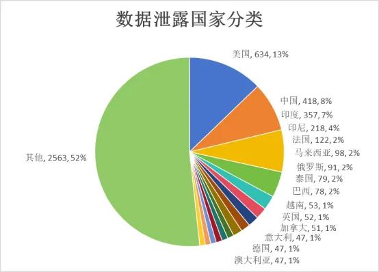 其中,美国是毫无疑问重灾区,共计发生634起数据泄露事件。