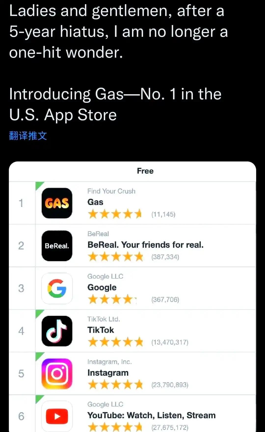 2022年,瞄准高中生、主打“匿名夸夸”的Gas迅速走红,半个月内下载量就达到了50万次。2023年初,Gas被《2023全球独角兽榜》排名第23位的Discord收购,看似前景大好,可距收购不到9个月,Discord就决定关闭Gas,原因是用户流失过快。
