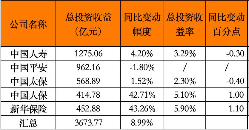 1五家上市险企总投资收益增9%达3673亿,新华保险增速领跑