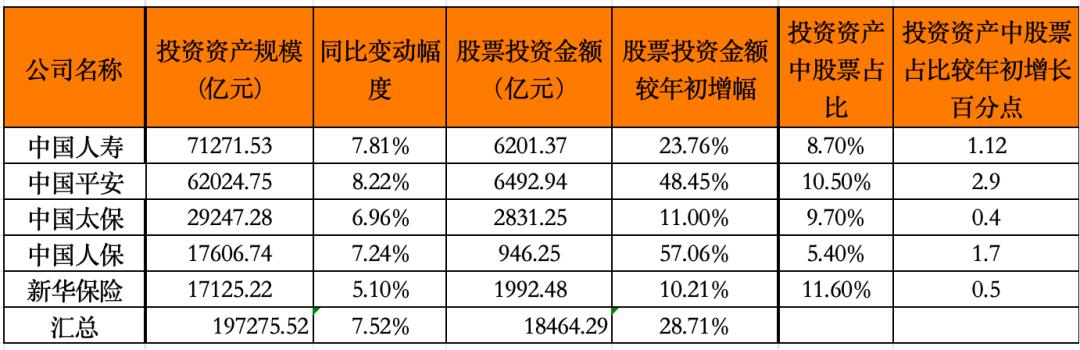 上市险企普遍增加对股票资产的配置比例。