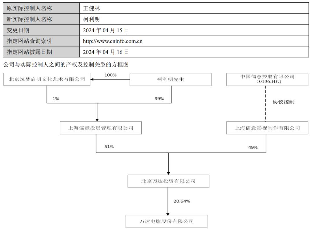 2023年前后,王健林旗下公司分批向柯利明和中国儒意转向万达电影股权。到2024年初,柯利明取代王健林成为万达电影的实际控制人。近期,王健林的一致行动人再度减持万达电影,大有完全退出之意。