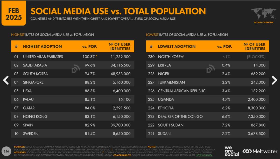阿联酋、沙特是全球社交媒体使用率(以人口比较)最高的两个国家