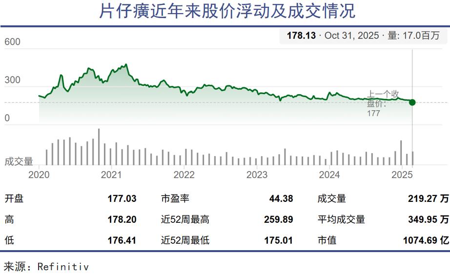 同样跌去六成的,还有片仔癀距离2021年历史高点的股价。