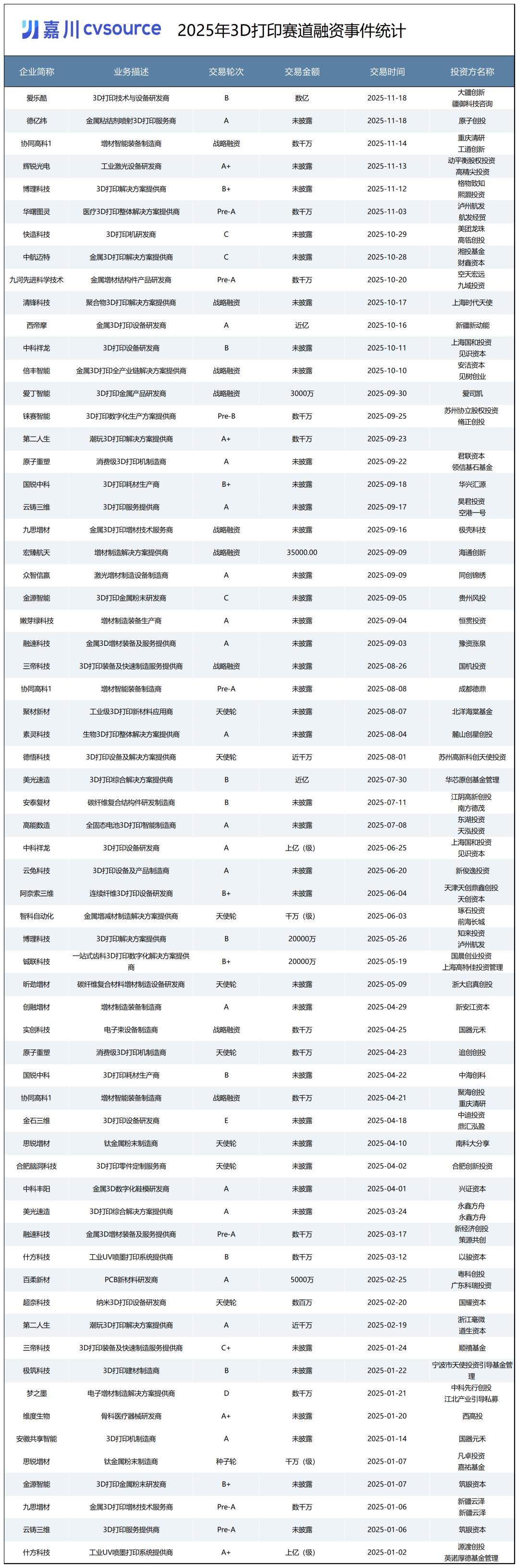 资本的动向,也侧面反映了行业的火热。2025年末的短短两个月内,3D打印赛道密集传来重磅投融资消息: