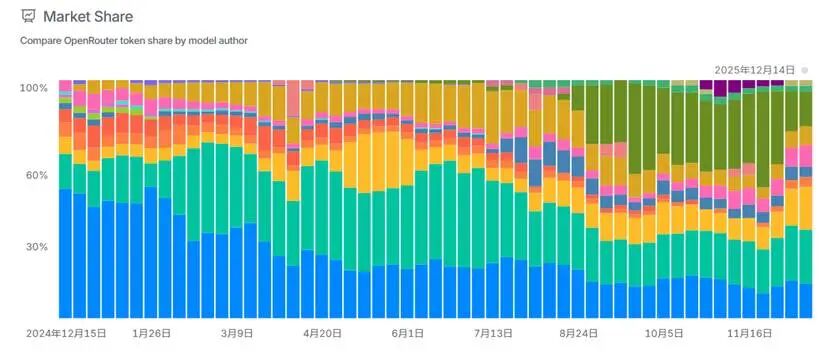 图:不同大模型厂商的市场份额趋势,来源:OpenRouter