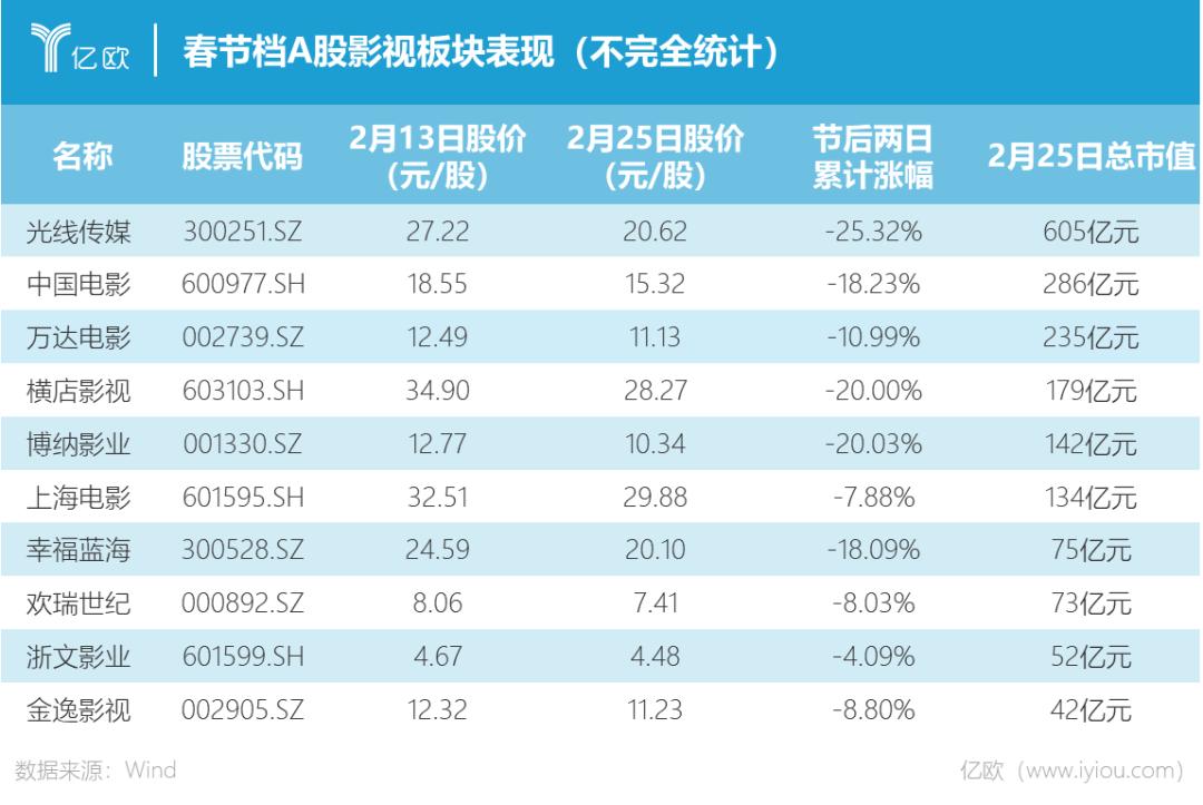 马年春节后的首个A股交易日,影视板块迎来一记“冷水”。
