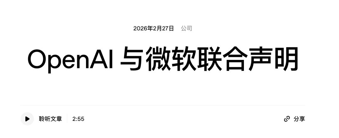 参考链接:[1]https://openai.com/index/continuing-microsoft-partnership[2]https://x.com/sama/status/2027386252555919386%3Fs=20[3]https://www.cnbc.com/2026/02/27/amazon-open-ai-cloud-jassy-altman.html[4]https://group.softbank/en/news/press/20260227
