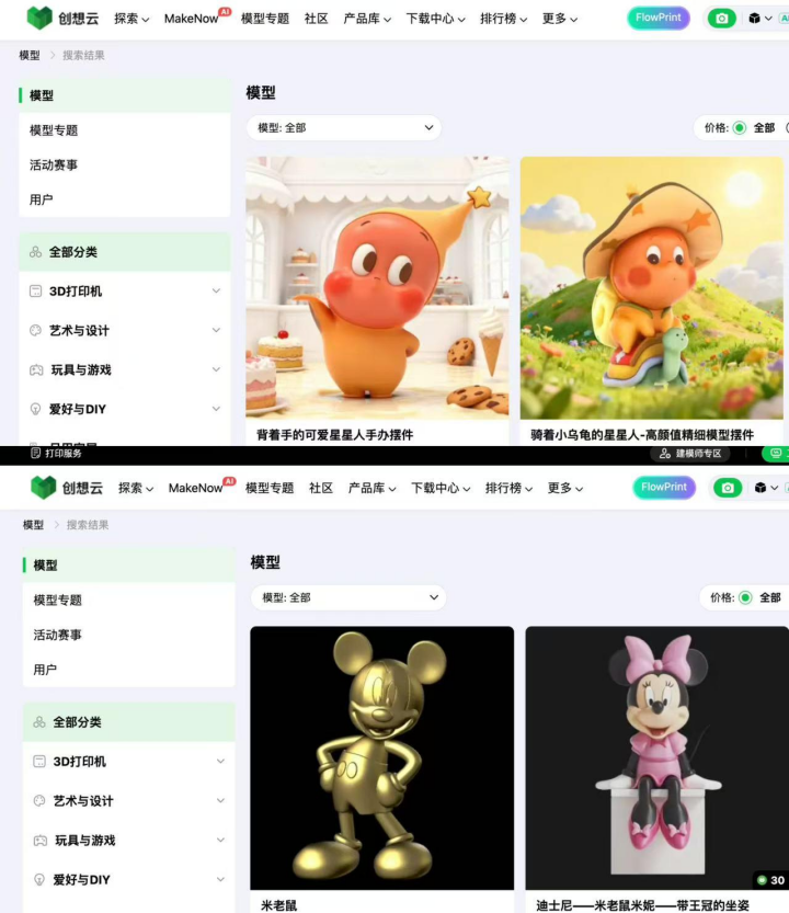 类似事件亦发生在3D打印厂商创想三维身上,其旗下的创想云社区内,泡泡玛特的“星星人”模型资源也同样明晃晃地摆在台面上。