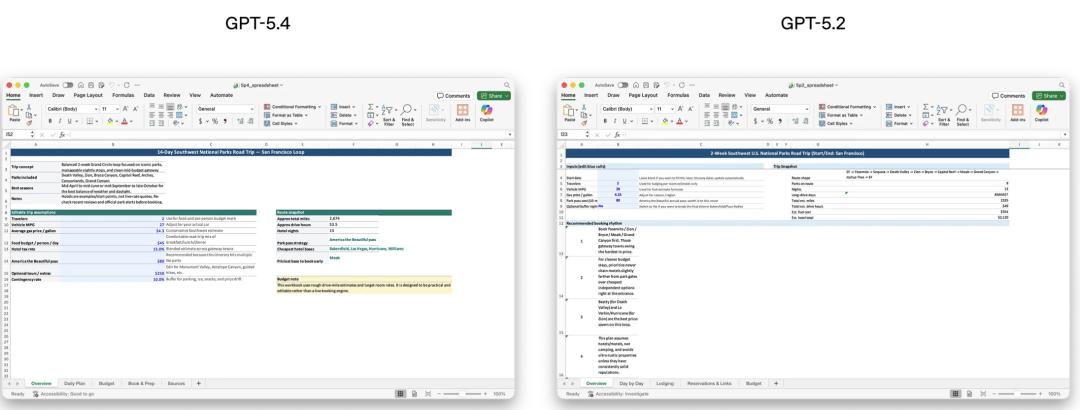 GPT-5.4 在表格填写上明显比 5.2 更聪明|图片来源:OpenAI