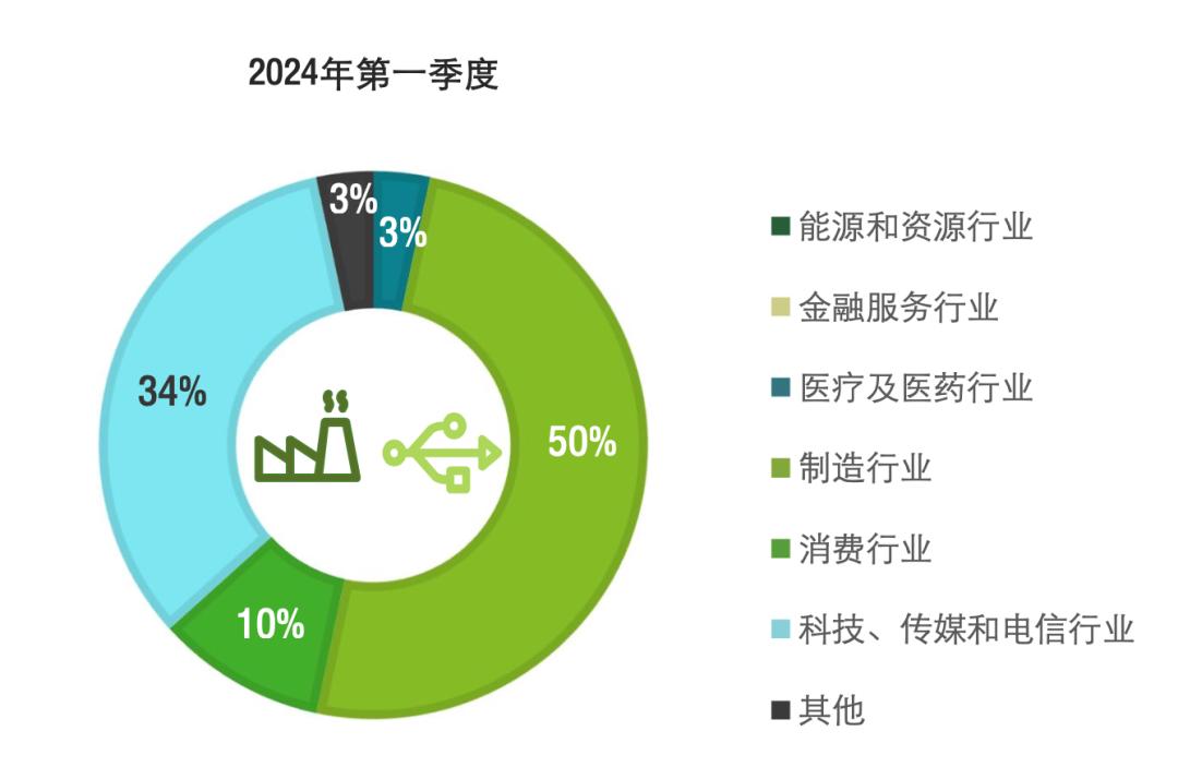 2024年第一季度中国内地新股行业划分,图源 / 德勤