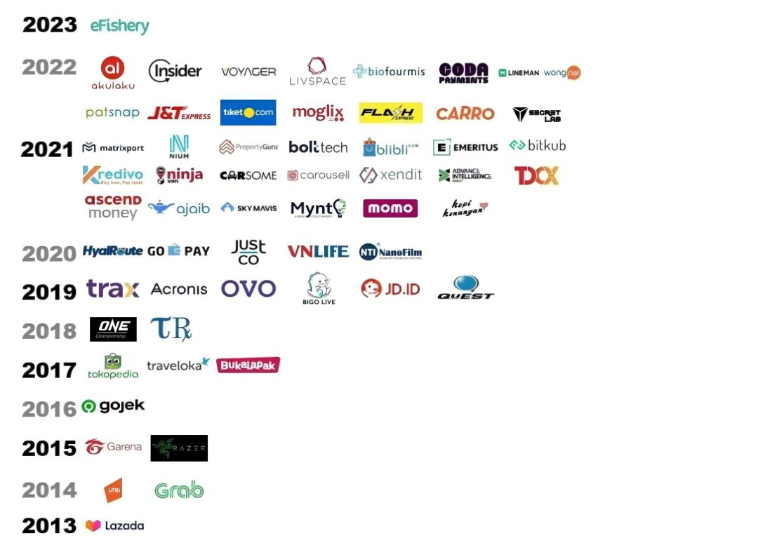 以Lazada为例,2012年其成立,2013年“独角兽”的概念在全世界第一次被提出,同年Lazada完成E、F轮融资后,成为东南亚第一只独角兽企业。自此,东南亚的创投故事开始绽放异彩。