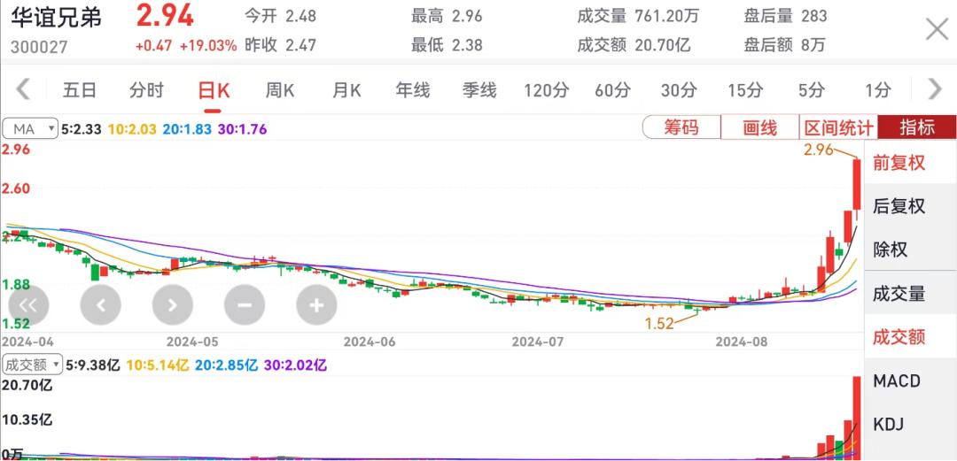 8月14日、15日,分别上涨13.95%和13.78%,16日,小幅下调。本周一,直接涨停。昨日,微涨开盘,随即快速拉升,午后一度涨停,收于2.94元/股,大涨19.03%,市值81.57亿元。全天交易额达20.70亿元,换手率高达30.63%。