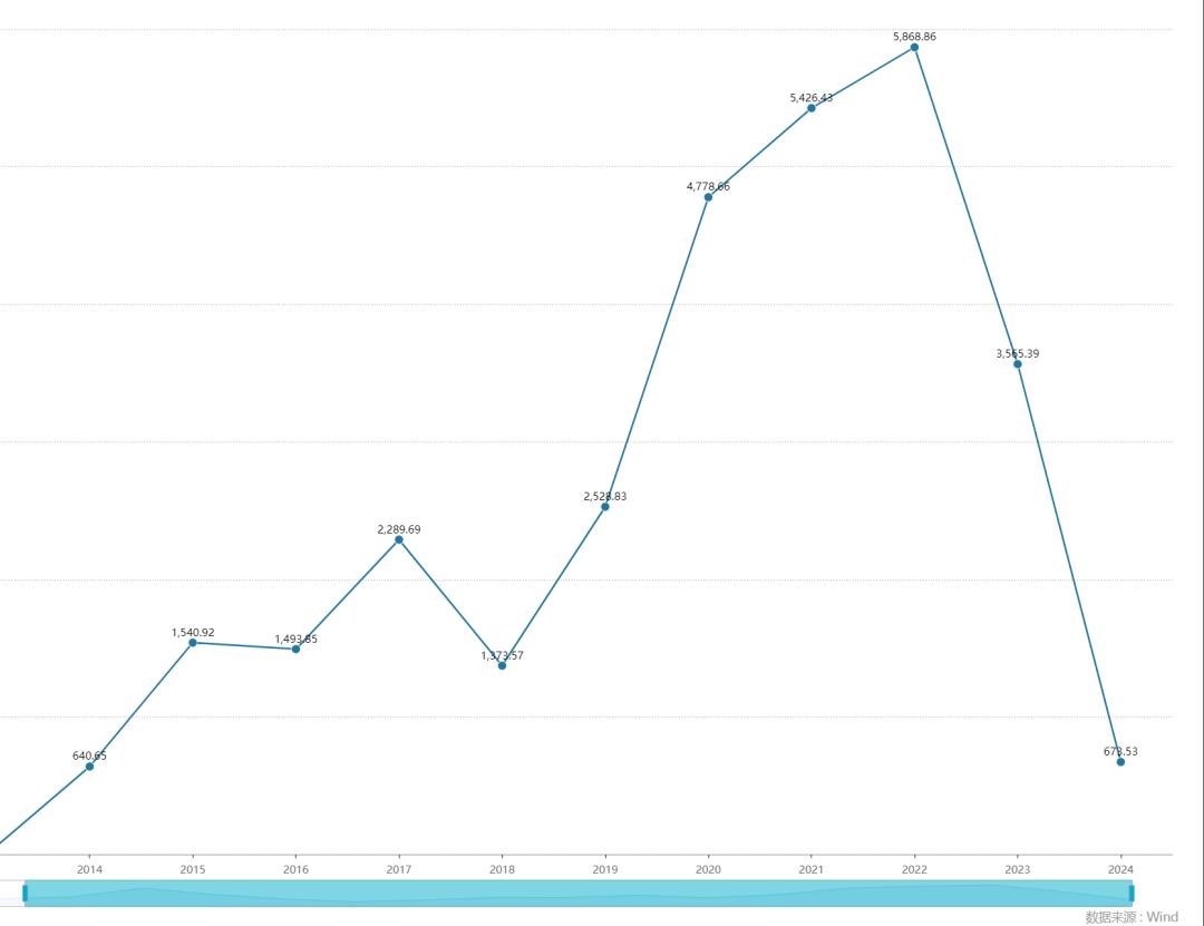 2014-2024年A股IPO募资额,数据来源:Wind