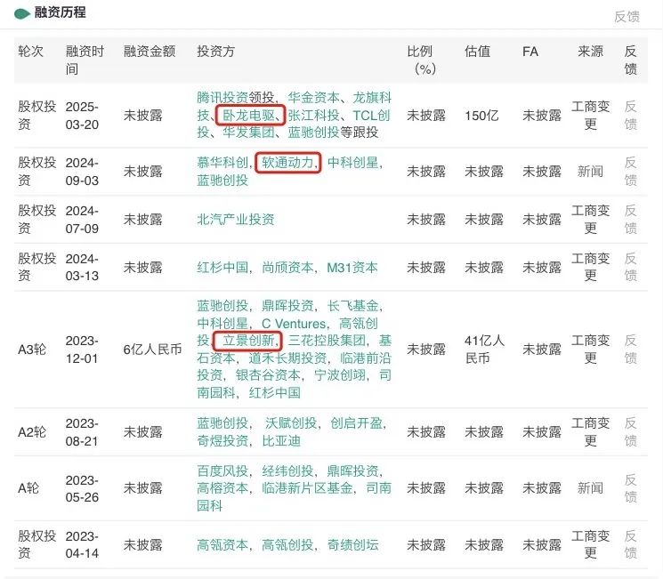 翻阅智元机器人投资者名单,与上述案例类似的,深交所创业板上市公司软通动力(截至4月14日收盘总市值520.69亿元)、估值高达155亿元的立景创新,与智元机器人均已实现“互相战投”。