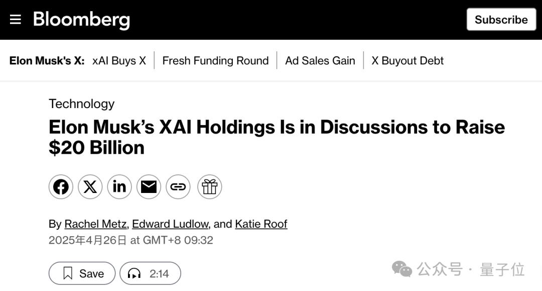 [1]https://www.bloomberg.com/news/articles/2025-04-26/elon-musk-s-xai-holdings-is-in-discussions-to-raise-20-billion