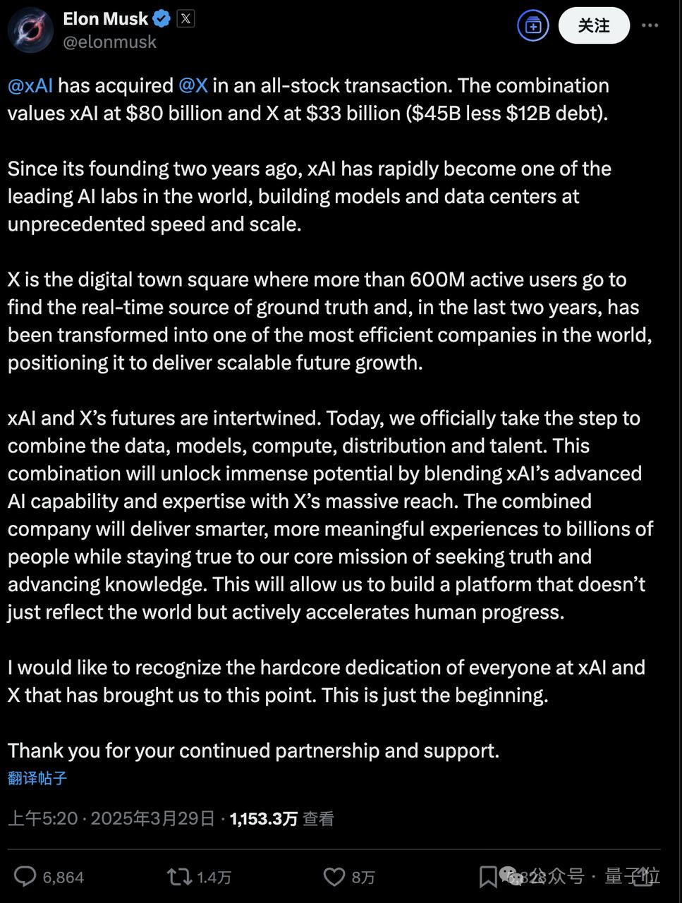 但其实在合并之前,两家就已经深度融合——截止到1月份,X还持有xAI价值60亿美元的股份。