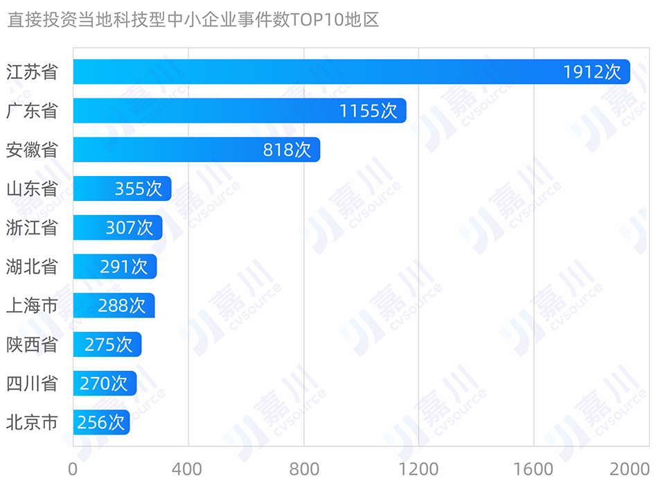 此外,排进前10的省份还包括山东、浙江、湖北、上海、陕西、四川和北京。值得注意的是,上海和北京的出手次数、投资企业数都不算太高,但是投资金额却不少。这说明上海和北京在少数企业上放进去了更多资金。