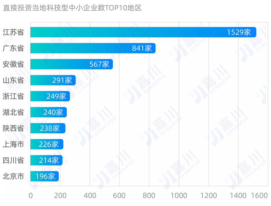 这60多万家企业,主要扎堆在东部沿海和长江流域。其中,江苏省拥有9.44万家、广东省5.61万家、湖北省5.38万家、山东省5.17万家。四大省份,占到了全国科技型中小企业的四成以上。