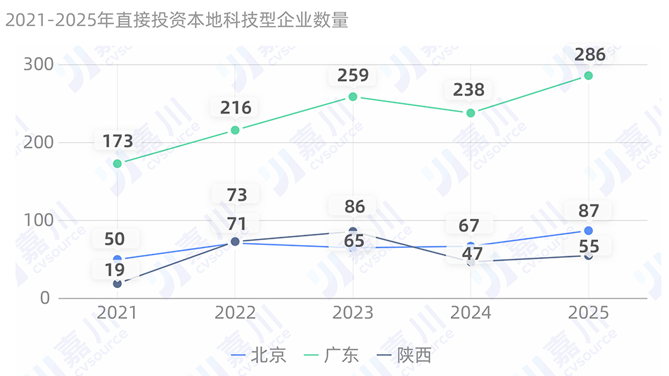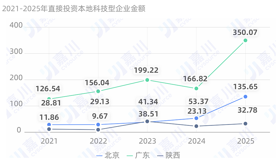 再看广东。广东国资2021年直投本地科技型企业173家,直投金额为126.54亿元。2025年,直投286家企业,直投金额350.07亿元。直投金额是2021年的2.77倍。其趋势也与北京相似。