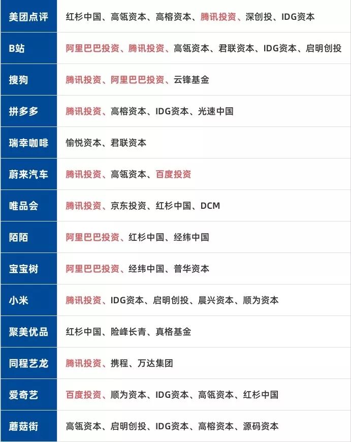 就目前来看,现在的投资界已基本被划分成了2个阵营,一是以IDG资本、红杉资本中国、经纬中国、深创投等为首的传统VC/PE机构;另外就是以腾讯、阿里、百度、小米等为首的企业基金。