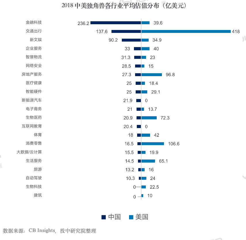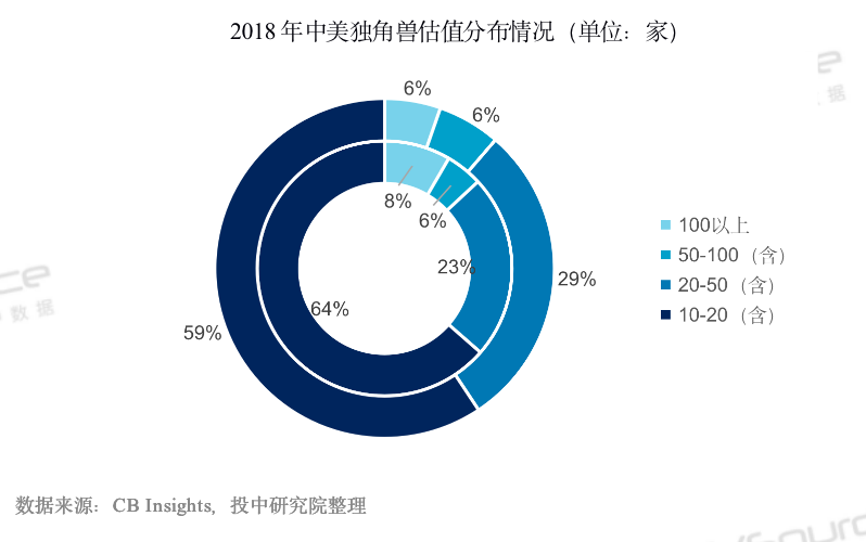 中美独角兽均以小估值为主,超级独角兽赛道各异