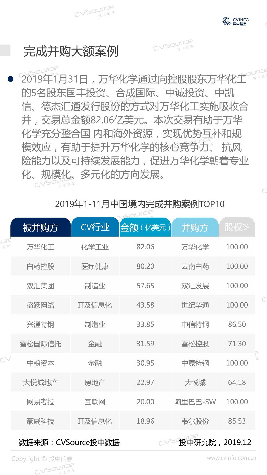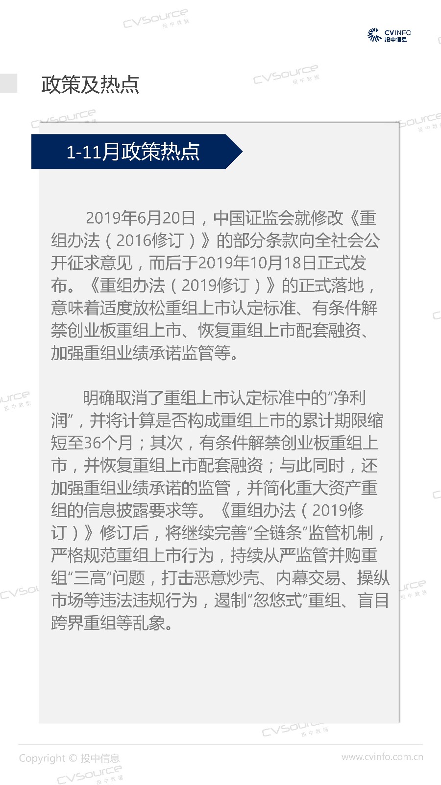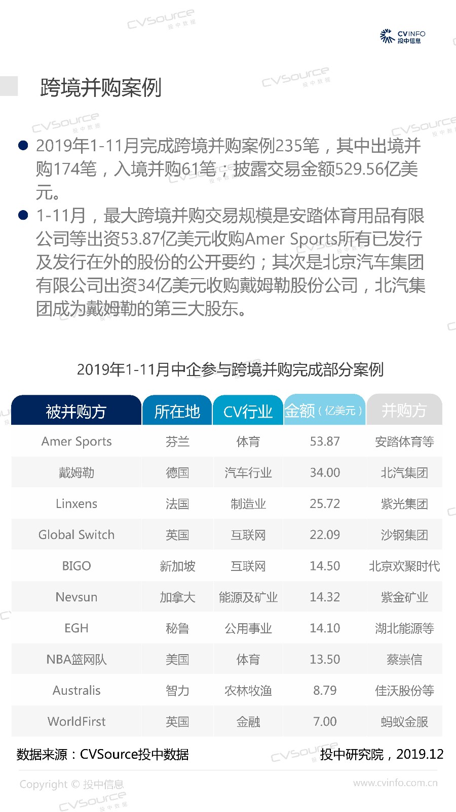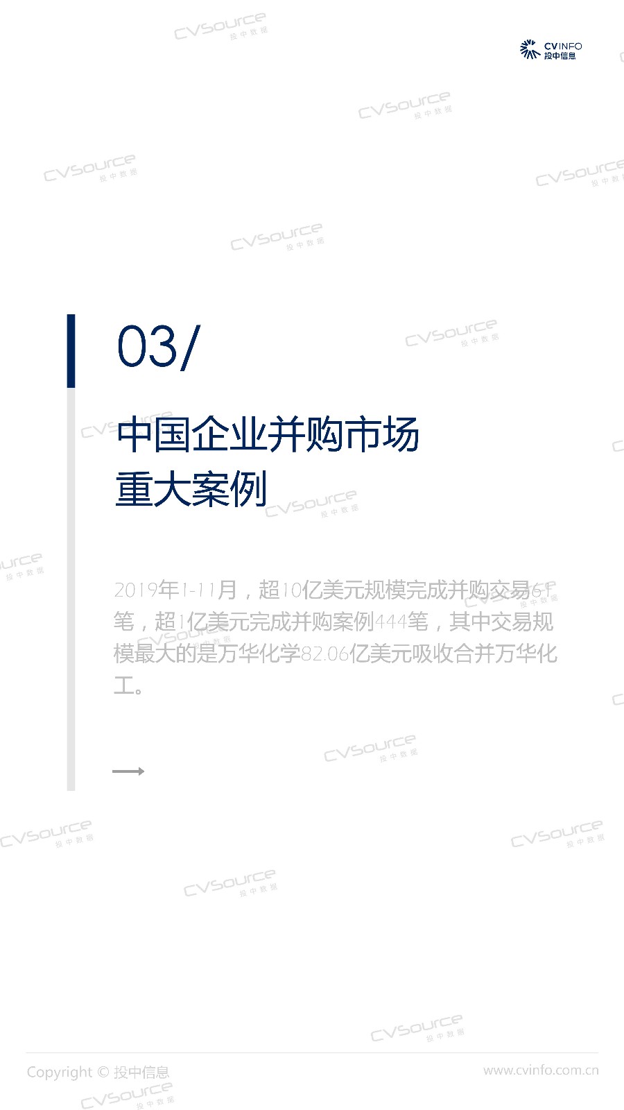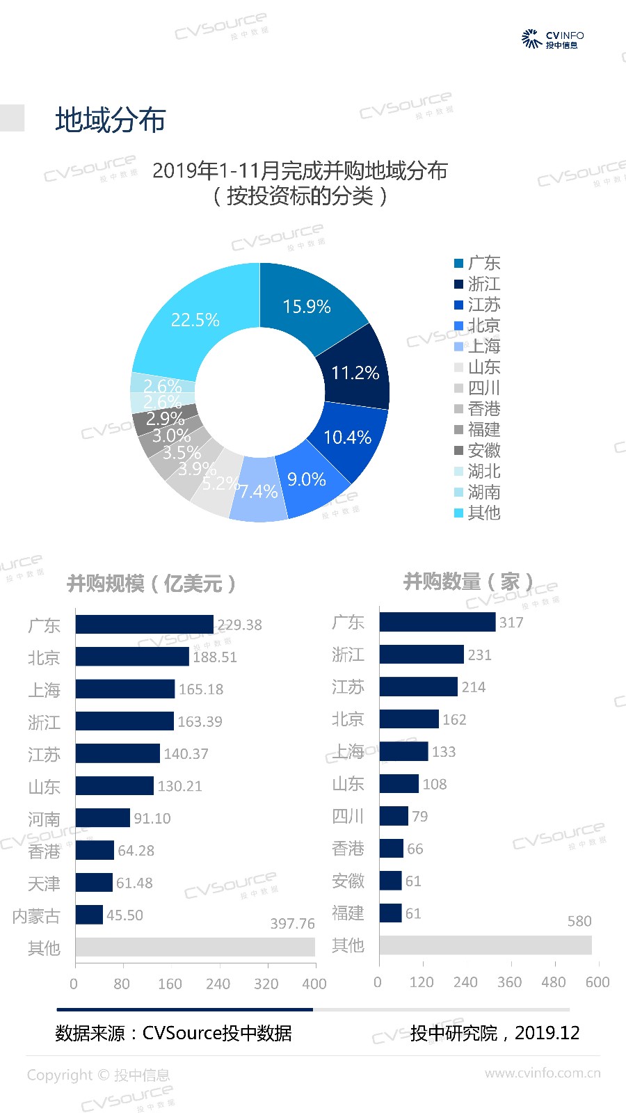 2019年1-11月,中企并购市场投资意向斜坡下滑,交易规模近五年内最低。1-11月私募基金拟参与中企并购交易共计555笔;共计203支私募基金完成并购;共计418支私募基金以并购的方式成功退出。